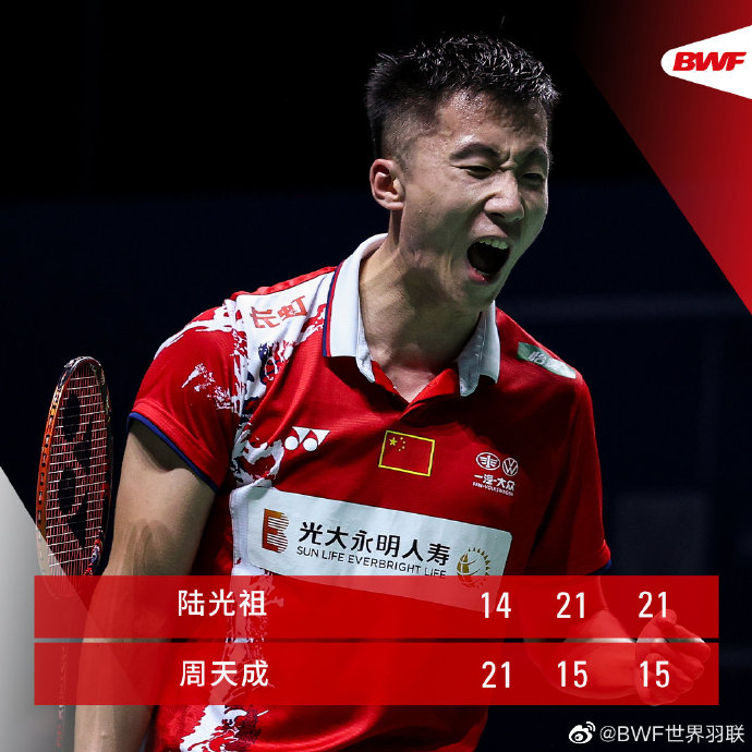 坚定的眼神,果断的出手,陆光祖用实力击败天才少年昆拉武特,在世锦赛上留下了精彩的一幕;面对强敌毫不怯场,赵俊鹏连败十号种子王子维、爱尔兰新星阮日成功晋级八强;首次参加世锦赛的王祉怡,直落两局击败李怡逢,刮起一股小将风暴;面对落后从容应对,何济霆/谭强16-21 21-12 21-12海明/斯托伍德,实力上演逆战翻盘。